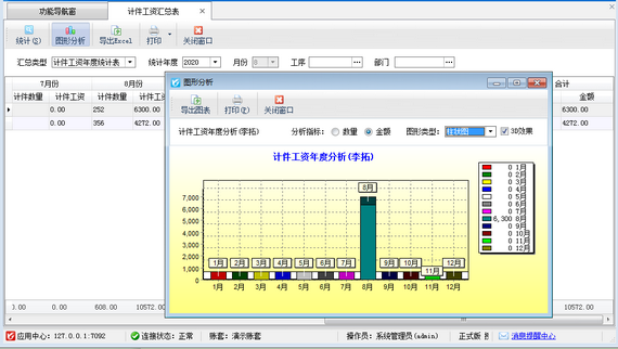 出納記賬軟件專業版支持計件工資管理功能,可以對公司內部根據計件進行核算工資的員工工資進行管理,提高了企業管理效率。計件工資匯總表可根據統計類型、統計年度、月份、工序等條件來進行統計所有員工的計件工資情況,包括員工姓名、工序、計件數量、計件工資等數據,本文詳細介紹一下如何查詢員工計件工資匯總表? 在功能導航窗點擊“綜合管理”—》“計件工資匯總表”即可進入員工計件工資匯總表界面,如下圖所示。 員工計件工資匯總表界面支持根據匯總類型、統計年度、月份、工序等條件來進行統計所有員工的計件工資情況
