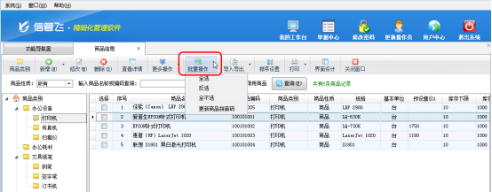 信管飛RMS、信管飛倉庫管理軟件和信管飛送貨單軟件都包括對商品信息的管理。商品信息集中管理和維護商品資料,可以對商品信息分類管理。在軟件中如何快速批量修改商品類別呢?下面我們以信管飛倉庫管理軟件為例詳細介紹下如何批量修改商品類別。 在功能導航窗中點擊“基礎資料”—》“商品信息”,即可進入“商品信息”界面,如圖1所示。圖1 以圖1為例,要把第2行至第5行商品類別是“商品類別”的4條記錄的商品類別改為“打印機”。首先點擊第2行記錄,然后按下Shift鍵不松手時鼠標點擊第5行記錄,這樣就可以