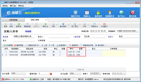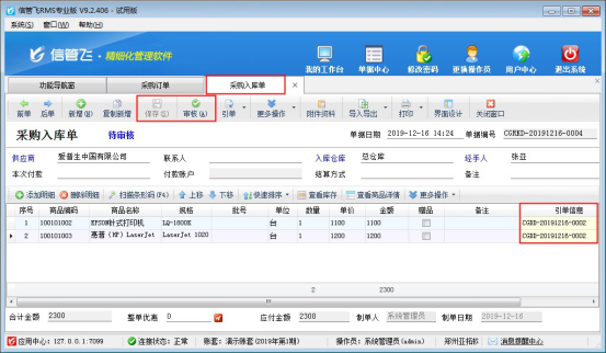 信管飛RMS軟件是集“采購管理、銷售管理、庫存管理、往來賬管理”一體的進銷存軟件,軟件可引用訂單生成對應的采購入庫單和銷售出庫單。軟件默認引用訂單需要訂單處于審核狀態,否則引用不了(如下圖所示),有的客戶存引用未審核的訂單,本文示范下如何設置? 在功能導航窗點擊“系統管理”→“系統參數配置”→“業務參數”可以打開“業務參數”配置界面,在業務單據相關參數內打鉤啟用“引單可選擇未審核的訂單”參數,然后點擊“保存”按鈕保存設置,如下圖所示: 參