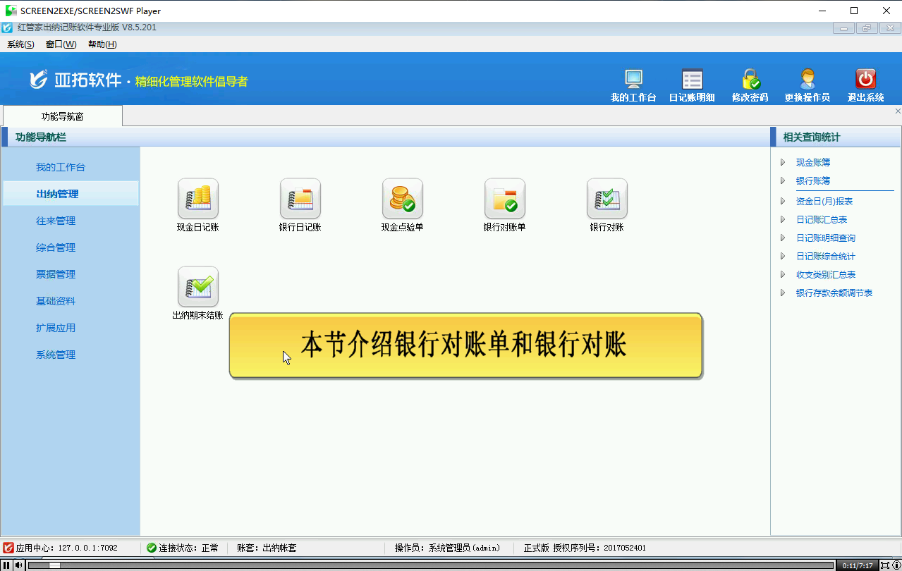 介紹信管飛RMS出納管理銀行對賬單和銀行對賬的主要功能。