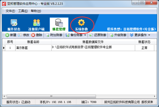 亞拓軟件采用新架構技術開發的進銷存管理軟件及庫存管理軟件:亞拓管理軟件、亞拓倉庫管理軟件都包括應用中心及客戶端程序,“應用中心”是系統的管理控制中心,集中管理連接客戶端和賬套數據庫,從而實現數據的集中存儲和實時共享,應用中心主要包括運行狀態管理、連接客戶端管理、賬套管理、系統參數設置以及其他管理功能。