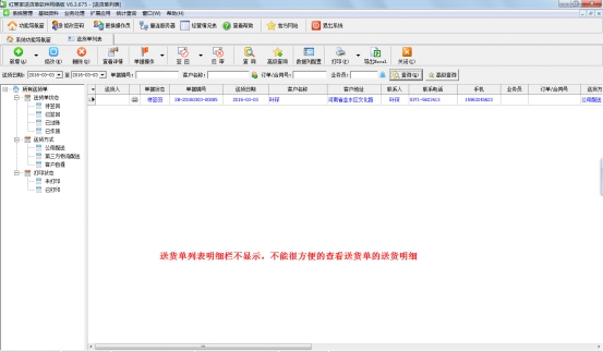 設置完之后再次打開送貨單列表界面,就可以看到在送貨單列表下方送貨單明細欄已顯示。