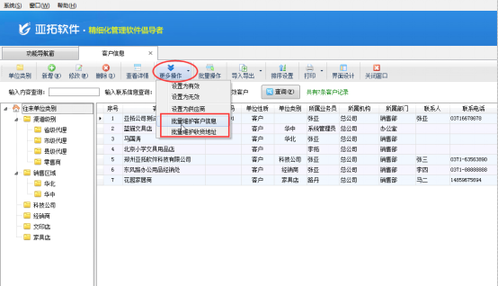 為了更好的管理客戶信息,亞拓管理軟件、倉庫管理軟件等新版本中增加了可批量維護客戶信息的功能。可以批量修改和完善客戶資料。