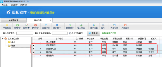亞拓管理軟件紅管家倉庫管理軟件紅管家出納記賬軟件都包括對客戶信息和供應商信息的管理,紅管家票據打印軟件紅管家送貨單軟件也包括對客戶信息的管理。客戶信息集中管理和維護客戶資料,供應商信息實現供應商資料的維護。在軟件中如何快速批量修改客戶或供應商單位類別呢?下面我們以亞拓管理軟件專業版為例詳細介紹下如何批量修改客戶單位類別。另外,批量修改供應商單位類別的方法基本一樣,在此不再贅述。
