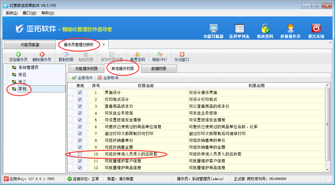 歡迎免費下載試用這款可以設(shè)置操作員不可修改其他人員所錄入的應(yīng)收款的送貨單管理軟件:紅管家送貨單軟件