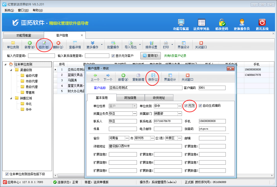 送貨單軟件內(nèi)如何將客戶信息設(shè)置為無效?