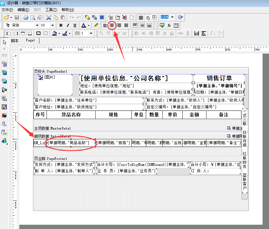 打印模版中如何設(shè)置文本框內(nèi)容居中顯示?