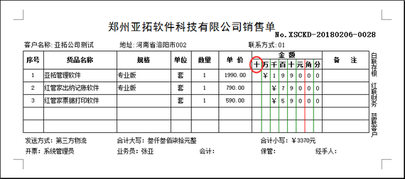 信管飛送貨單軟件、信管飛倉庫管理軟件及亞拓管理軟件等都支持開單打印單據,軟件內置了十幾種打印格式模版,同時支持自定義打印格式模版,本篇文章我們以亞拓管理軟件為例詳細介紹一下打印模版中如何設置財務單元格顯示位數?