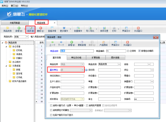 信管飛RMS(標準版和專業版)、信管飛送貨單軟件信管飛倉庫管理軟件等都支持客戶自己維護商品信息,商品的基本單位可直接在維護商品信息的時候填寫好。在開單使用商品信息后,再對商品基本單位進行修改時,商品的基本單位是鎖定狀態,為了更加自定義商品單位,軟件支持修改已使用商品的基本單位。以信管飛RMS專業版為例,我們介紹一下如何修改已使用商品的基本單位。