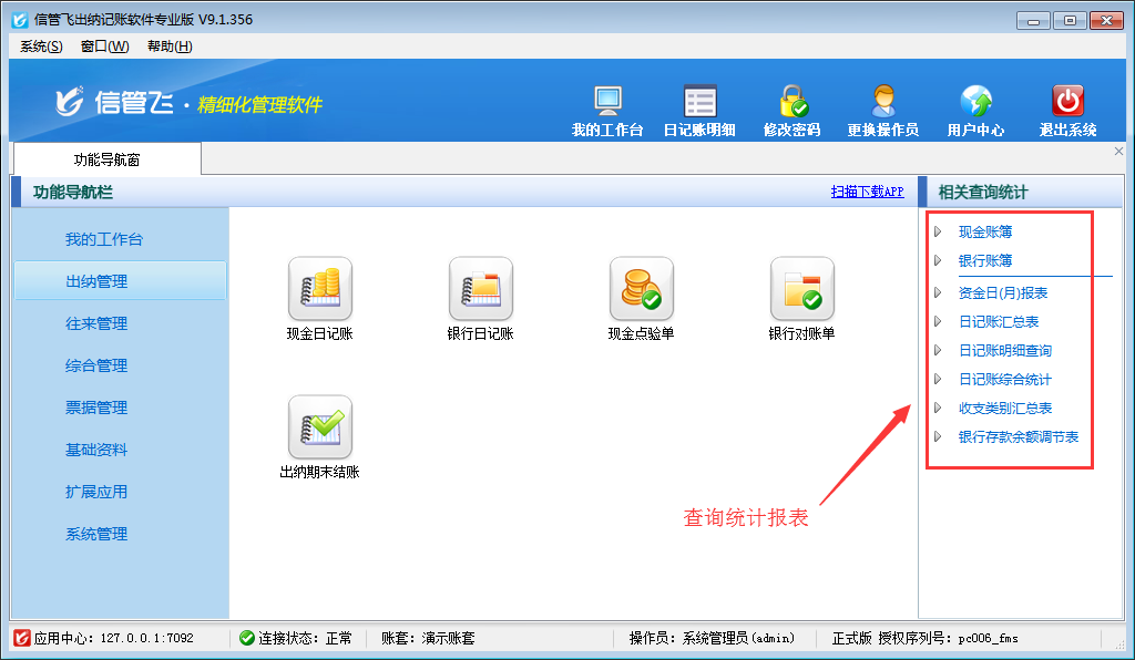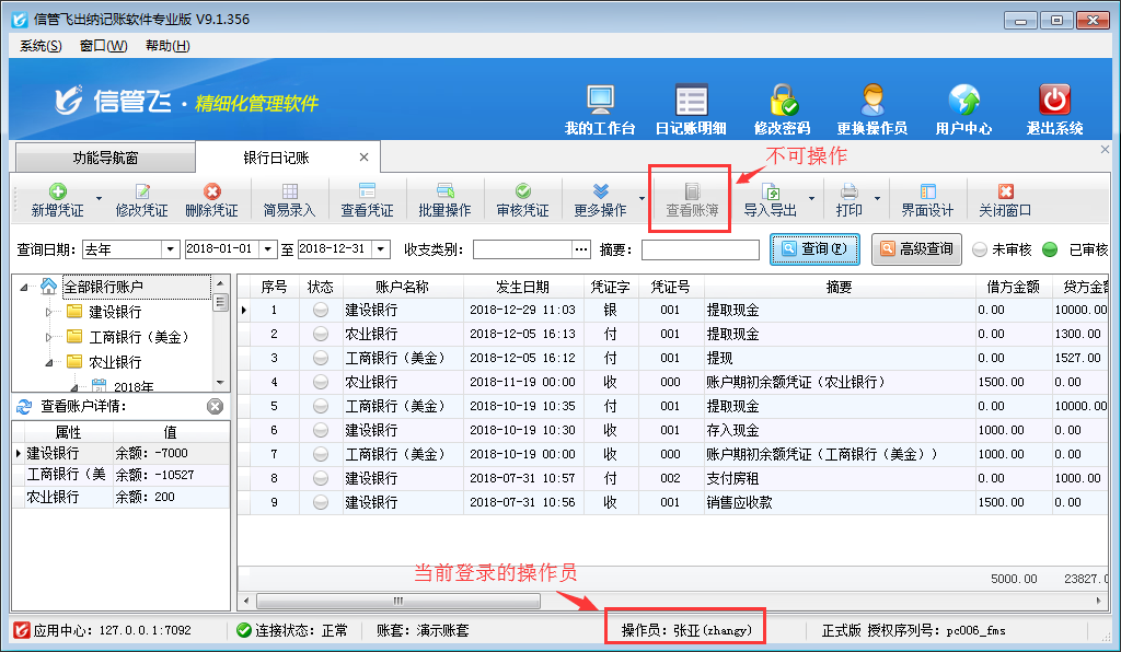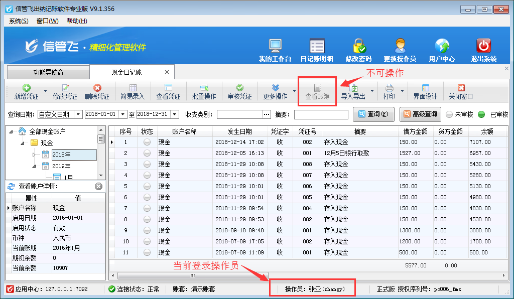 歡迎免費(fèi)下載試用這款可設(shè)置操作員不可查看現(xiàn)金及銀行賬簿出納記賬軟件信管飛出納記賬軟件