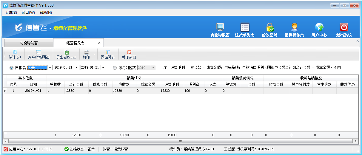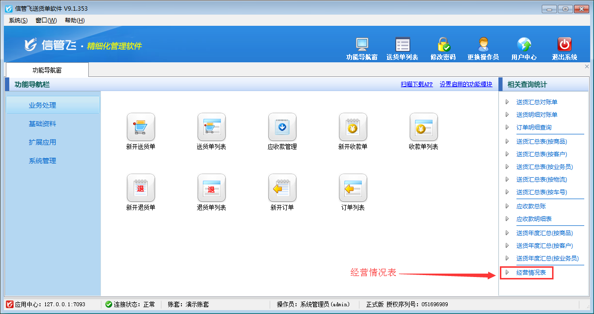 歡迎免費下載試用這款可設置操作員不可查看經營情況送貨單軟件信管飛送貨單軟件
