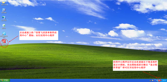 運(yùn)行信管飛送貨單軟件應(yīng)用中心并打開信管飛送貨單軟件應(yīng)用中心程序界面,主機(jī)電腦上軟件安裝后會(huì)在桌面上自動(dòng)創(chuàng)建“信管飛送貨單軟件應(yīng)用中心(紅色圖標(biāo))”及“信管飛送貨單軟件即客戶端(藍(lán)色圖標(biāo))”的快捷方式,點(diǎn)擊“信管飛送貨單軟件應(yīng)用中心(紅色圖標(biāo))”即可運(yùn)行信管飛送貨單軟件應(yīng)用中心,如下圖所示。