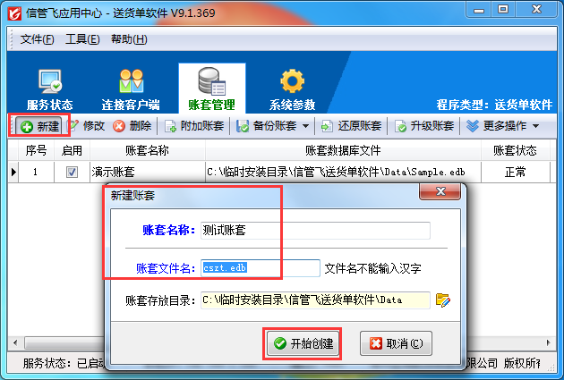 賬套即賬套數(shù)據(jù)庫,這是一個(gè)會(huì)計(jì)業(yè)務(wù)引申出來的概念,賬套數(shù)據(jù)庫中存儲(chǔ)業(yè)務(wù)數(shù)據(jù)。使用軟件之前建議新增加一個(gè)賬套,用于重新錄入和管理數(shù)據(jù),信管飛RMS信管飛倉庫管理軟件信管飛送貨單軟件信管飛出納記賬軟件信管飛票據(jù)打印軟件等軟件的賬套都是在主機(jī)電腦的應(yīng)用中心程序上集中管理的,下面我們以信管飛送貨單軟件為例詳細(xì)介紹下在使用軟件之前如何新增加一個(gè)賬套?