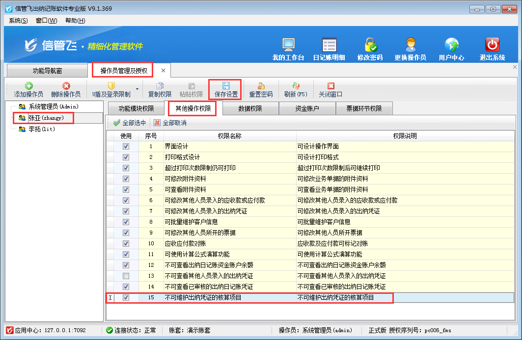 出納記賬軟件如何設(shè)置操作員不可維護出納憑證的核算項目?