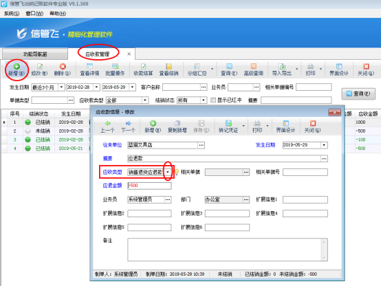 在功能導航窗點“往來管理”—》“應收款管理”,即可打開“應收款管理”界面,點擊“新增”按鈕,系統打開新增應收款窗口,如圖1所示,“應收類型”選擇為“銷售退貨應退款”,錄入其他數據后保存此應收款信息即可。