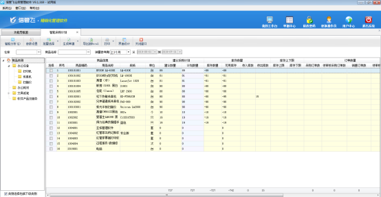 信管飛倉庫管理軟件支持由智能采購計劃生成采購計劃單。智能采購計劃可根據當前庫存情況,并可結合庫存上下限、同期銷售量、銷售訂單數量、待審核數量等條件進行組合運算,從而給出建議的商品采購量。可以把建議結果生成為采購訂單。智能采購計劃具體操作步驟如下: