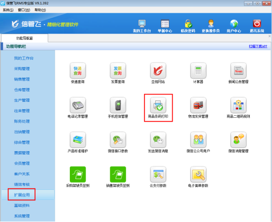 信管飛RMS星光版、標準版、專業版都可以對商品信息進行管理,都支持商品條碼打印功能,在商品出入庫時,為了方便快速開單,可以通過掃描商品條碼開單,提高開單效率。下面以信管飛RMS專業版為例介紹一下如何打印商品條碼。