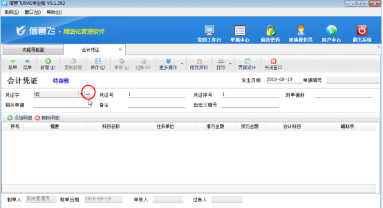 信管飛RMS會計憑證如何設置默認憑證字?