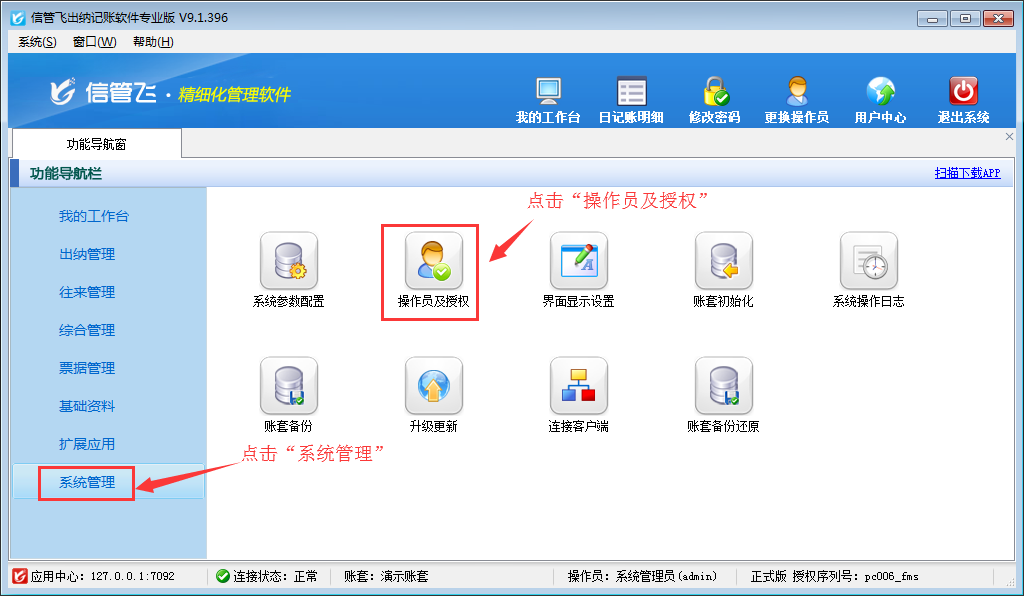 歡迎免費下載試用這款可設置多個操作員賬號登錄的出納記賬軟件:信管飛出納記賬軟件。