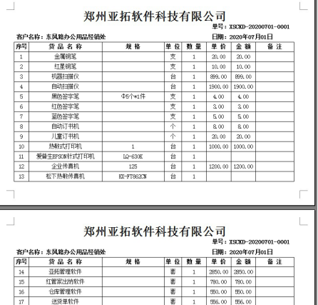 信管飛送貨單軟件信管飛倉庫管理軟件、信管飛RMS軟件等都支持自定義設計打印模板。打印模板格式是根據打印紙張尺寸進行設計,如存在一頁打印不完的單據,默認第二頁打印仍顯示表頭信息,如下圖所示,為了避免浪費,可設置表頭信息僅在第一頁顯示。本文以“信管飛送貨單軟件”為例,進行示范。