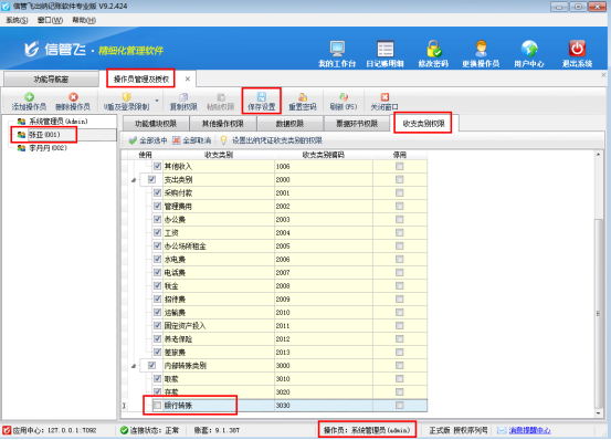 出納記賬軟件如何設(shè)置操作員的收支類別權(quán)限?