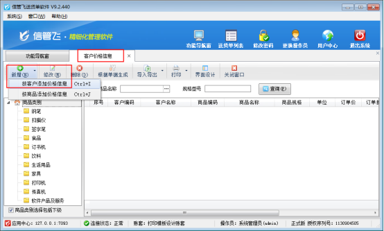 信管飛送貨單軟件、信管飛RMS軟件等支持按客戶管理商品價(jià)格信息,前期使用軟件沒(méi)有客戶最近商品價(jià)格,軟件支持通過(guò)導(dǎo)入導(dǎo)出方式,可把整理好的商品價(jià)格信息批量導(dǎo)入軟件中,本文以“信管飛送貨單軟件”為例,示范下如何批量導(dǎo)入客戶價(jià)格信息?