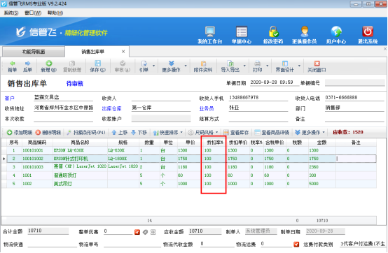 信管飛送貨單軟件、信管飛倉庫管理軟件、信管飛RMS(進(jìn)銷存軟件)開單時(shí),當(dāng)商品存在打折情況時(shí),支持錄入商品的折扣率。當(dāng)商品明細(xì)的內(nèi)容比較多時(shí),為了快速開單,提高效率,可以批量更新單據(jù)明細(xì)中的折扣率。下面我們以信管飛RMS專業(yè)版為例詳細(xì)介紹下如何批量修改商品折扣率。