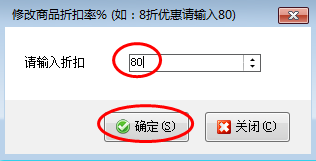 在單據(jù)明細(xì)上方,點(diǎn)擊“更多操作”—》“修改商品折扣”,彈出修改商品折扣率的窗口,輸入折扣(例如:8折優(yōu)惠就輸入80),然后點(diǎn)擊“確定”進(jìn)行保存,如圖2、圖3所示: