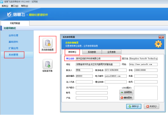 在功能導航窗選擇“系統(tǒng)管理”—》“系統(tǒng)參數(shù)配置”—》“使用單位”信息中修改后保存即可。如下圖1所示: