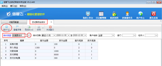 圖3 日記賬綜合統計界面