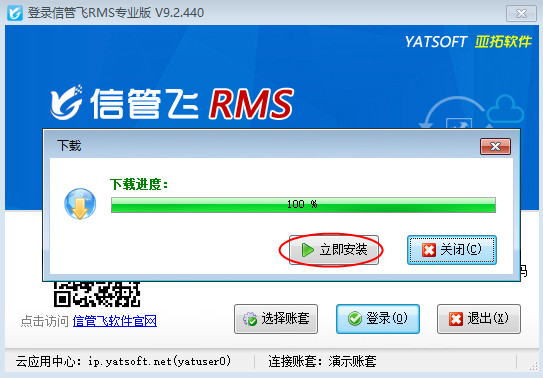 然后,系統會自動下載最新版安裝程序,下載進度條顯示100%后點擊“立即安裝”,將安裝最新版客戶端,點擊“下一步”默認安裝到原路徑即可,如下圖3、圖4所示:
