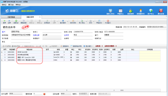 然后可以看到銷售出庫單的“商品名稱”數據項顯示寬度已經改變了,如圖3所示。
