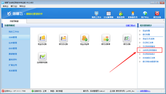 歡迎免費下載試用這款支持錄入出納憑證明細的出納記賬軟件:信管飛出納記賬軟件。