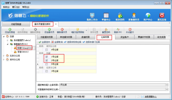 倉庫權限設置只有系統管理員賬號可設置,操作員不支持設置。