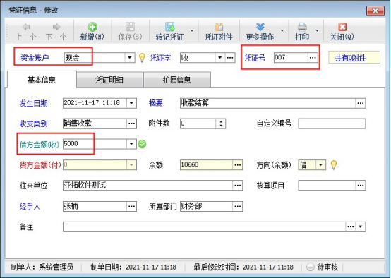 為便捷用戶操作,軟件支持設置憑證審核時自動審核相關結算單,本文以“信管飛出納記賬軟件”的收款結算單為例進行示范。