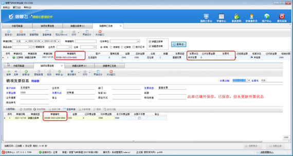 參數啟用后,可按單據填開一張發票,保存后查看相關單據開票狀態,還是“未開票”狀態,如下圖所示。
