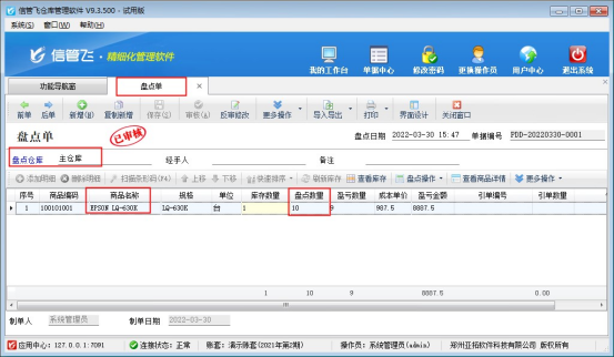 ②盤點單審核需要盤點商品之前無待審核單據(jù)記錄,盤點單審核后庫存數(shù)量變更為盤點數(shù)量。