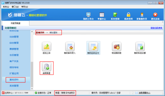 信管飛RMS軟件、信管飛倉(cāng)庫(kù)管理軟件支持多賬套管理,新建賬套登錄是未啟用狀態(tài),新開(kāi)單時(shí)需要啟用賬套,默認(rèn)啟用賬期是2021-1-1,如果需要從2022-1-1開(kāi)始,需要修改啟用賬期,本文示范下如何修改賬套啟用賬期?