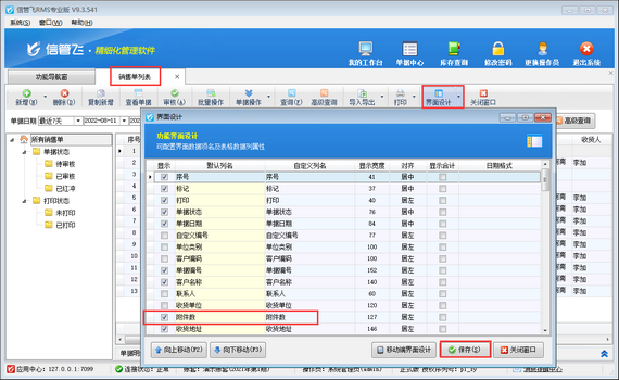 以銷售單列表為例,配置下如何查看銷售單附件數(shù),在銷售單列表工具欄點(diǎn)擊“界面設(shè)計(jì)”打開界面設(shè)計(jì)窗口,找到“附件數(shù)”數(shù)據(jù)項(xiàng),并勾選顯示出來,如下圖所示。