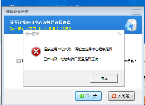 軟件登陸時(shí)系統(tǒng)提示“連接應(yīng)用中心失敗,請(qǐng)檢查......”如何處理?