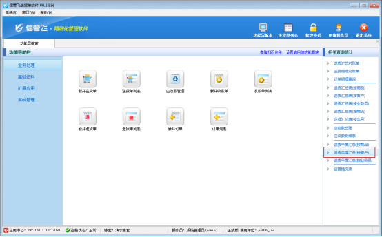信管飛送貨單軟件為集訂單管理、送貨管理、收款結(jié)算等功能并支持送貨明細(xì)對賬及業(yè)務(wù)綜合對賬的送貨單打印軟件。軟件根據(jù)錄入的每張訂單及送貨單等數(shù)據(jù),可以自動(dòng)生成統(tǒng)計(jì)報(bào)表,完成企業(yè)銷售統(tǒng)計(jì)查詢和與客戶送貨明細(xì)對賬的目的,如下圖所示。