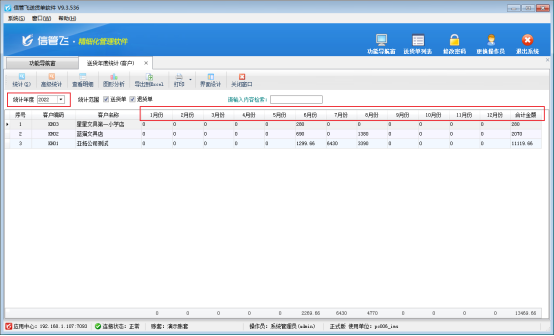 其中,送貨年度匯總(按客戶)可根據(jù)年份統(tǒng)計(jì)出每個(gè)月銷售給每個(gè)客戶的商品銷售金額。