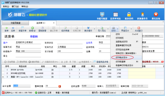 歡迎下載試用可調(diào)整模板合并打印的開單軟件:信管飛送貨單軟件