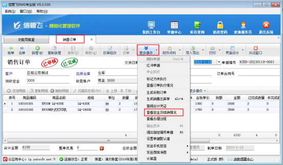 打開銷售訂單界面,在工具欄“更多操作”下,點擊“查看定金及結銷情況”彈出的界面點擊“查看結算單”,會直接打開收款結算單界面,在收款結算單界面,工具欄“更多操作”下點擊“紅沖單據”,紅沖作廢收款結算單后,返回至銷售訂單界面,可以修改收款賬戶,如下圖所示: