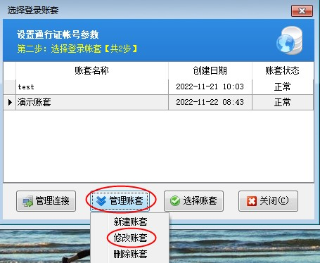 修改確定后點擊選擇賬套,可看到登錄界面顯示的賬套名稱為修改后的賬套名稱,如下圖所示: