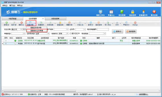 在應收款管理界面,選擇需要刪除的“客戶預付款”記錄,然后在工具欄點擊“查看詳情”—》“查看相關業務單據”,可以打開生成此客戶預付款記錄的相關收款結算單,如下圖所示。