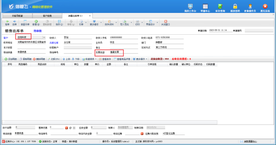 設置完成之后,導航欄點擊“銷售管理”,打開銷售出庫單界面,選擇相關客戶之后,可以看到客戶信息里面設置的默認發(fā)票類型已經自動調取出來了,如圖所示: