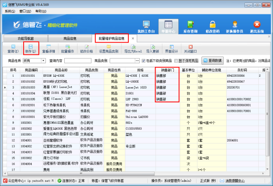 信管飛RMS軟件和信管飛倉庫管理軟件商品信息可輸入銷售部門,可以按部門管理商品,開單選擇商品時可按部門進行控制顯示的商品信息,本文以“信管飛RMS軟件”為例示范下如何設(shè)置選擇商品窗口僅顯示部門相關(guān)商品?
