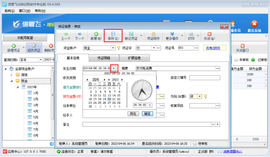 信管飛軟件如果發(fā)現(xiàn)憑證錄入的數(shù)據(jù)有問題,可以點(diǎn)擊菜單欄中的“修改憑證”按鈕,可以對已錄入的憑證進(jìn)行修改,修改后直接保存即可生效,對于已審核的憑證不支持直接反審修改。部分用戶有時單據(jù)審核后發(fā)現(xiàn)發(fā)生日期選擇錯了,此時該如何處理呢?下面以信管飛出納記賬軟件為例,介紹一下修改憑證發(fā)生日期解決方法。