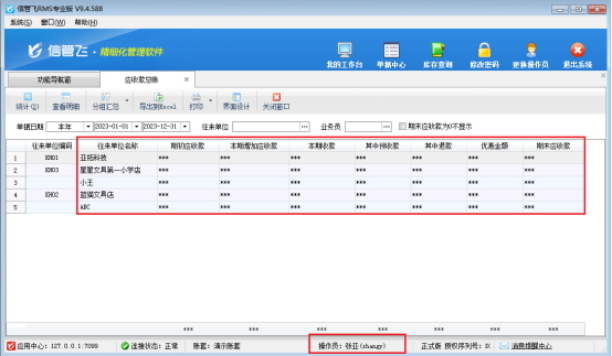 權限設置完成后,使用操作員賬號重新登陸軟件,應收總賬界面可以顯示金額,如圖所示:
